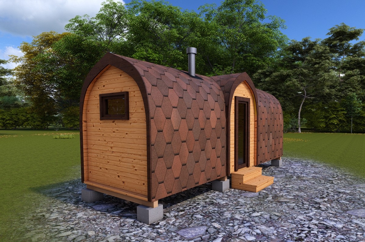 Симбиоз круглой и квадратной бани-бочки. Разработано с учётом эргономики, в ней так же просторно, как и в квадро-бочке, но при этом полукруглая крыша не дает задерживаться снегу и влаге на кровле. А еще такая баня безусловно красивая, мобильная и доступная каждому!