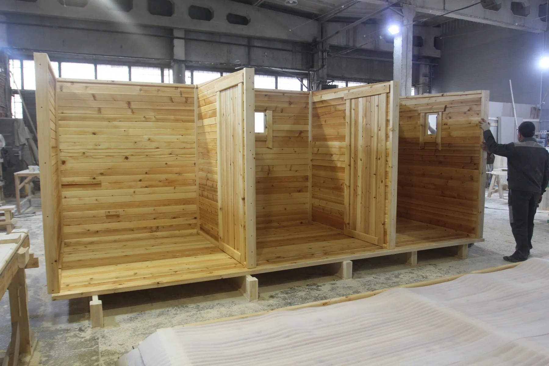 Данная опция позволяет доставить баню в труднодоступные места, куда выгрузка в собранном виде невозможна. Комплект для сборки обязательно полностью собирается на производстве, во избежание любых, даже малейших несостыковок, затем разбирается и нумеруется каждая деталь. Процесс сборки бани занимает примерно 1-2 дня, силами 2-3 человек (в зависимости от размера бани).