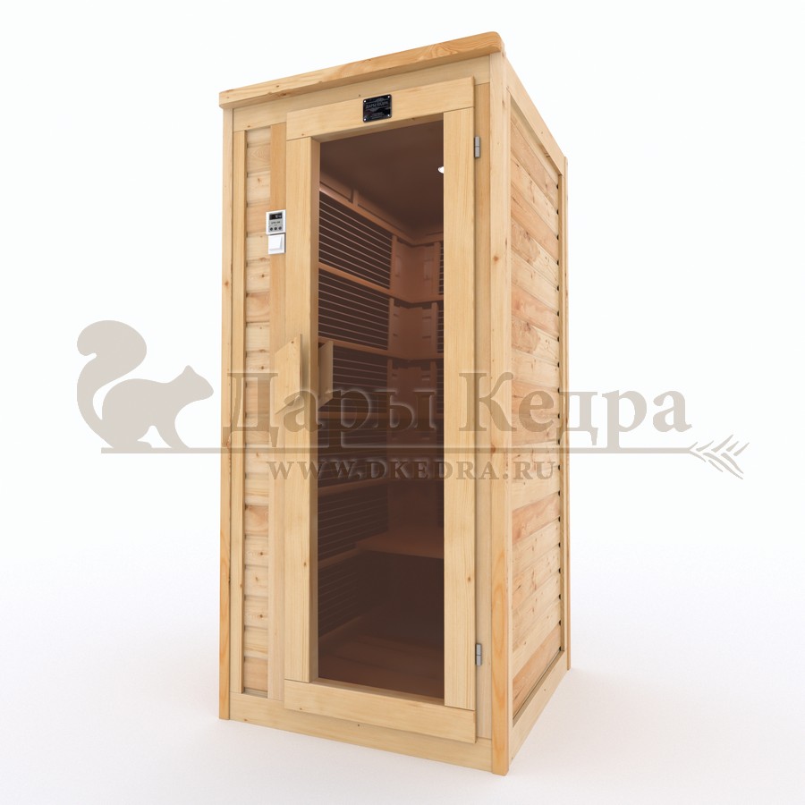 Одноместная финская сауна кабина из кедра с электрокаменкой Это специально оборудованная готовая деревянная кабина для сухого и влажного парения. Электропечь нагревает пространство внутри и позволяет сбрызгивать камни водой, слегка увлажняя воздух. Такая процедура позволяет избежать перегрева. Сауна обшита снаружи и внутри кедровой вагонкой и имеет теплоизоляционный слой. Финская сауна с электропечью подойдет, как для домашнего использования, так и для коммерции. Доставляется в разборном виде щитами, собирается по инструкции с помощью шуруповёрта. Обращаем Ваше внимание, что в стоимость сауны уже включена дверь с закаленным стеклом в раме из кедра с фиксатором и деревянным фасадом справа. Вы можете заменить фасад на цельностеклянный с безрамной дверью за дополнительную плату. Нагреваясь, древесина кедра выделяет полезные вещества-фитонциды, которые благотворно влияют на организм в целом и укрепляют иммунитет.