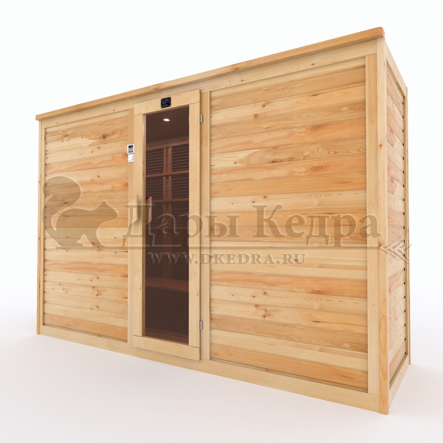 Четырёхместная инфракрасная сауна кабина из кедра с карбоновыми излучателями Это специально оборудованная кедровая кабина для прогрева тела человека сухим теплом. Воздух в таких парных не нагревается. Инфракрасные лучи воздействуют на тело, равномерно прогревая мышцы, суставы и органы. Карбоновые излучатели, встроенные в стены кабины, обладают мягким прогревом, что полностью исключает возможность ожога. Работает кабина за счет электричества. Инфракрасная сауна с карбоновыми излучателями подойдет как для домашнего использования, так и для коммерции. Обращаем Ваше внимание, что в стандартную комплектацию входит трапик для ног, но вы можете его заменить на цельный пол совершенно бесплатно! Целебная древесина кедра и инфракрасные лучи благотворно влияют на организм человека в целом. При регулярном использовании инфракрасной сауны укрепляется иммунитет, улучшается кровообращение и состояние кожи, выводятся токсины.